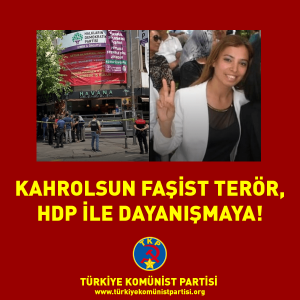 Bugün HDP İzmir İl Örgütü’nde gerçekleştirilen siyasi cinayet bir faşist terör saldırısıdır. Son dakikada iptal edilen toplantı gerçekleştirilseydi onlarca kişi katliam ile karşılaşacaktı. Saat 12:00’de başlayacak olan diğer bir toplantı öncesi 11:00’de başlayan saldırı 20 dakika sürmüştür. HDP’li vekillerin katılacağı 12:00’deki toplantı ile saldırı denk gelseydi vekiller, il ve ilçe yöneticileri dahil onlarca kişi katledilecekti. Orta-Doğu’da TC rejimi adına görev yapan faşist çetelerin mensubu olan faşist katil AKP ile MHP ile, İçişleri Bakanlığı ve MİT ile bağlantılıdır. Deniz Poyraz adlı Kürt yurtsever gencimizin katledilmesi bireysel bir eylem değildir. Başta ailesi olmak üzere tüm arkadaşlarına, yoldaşlarına, Kürt halkına ve Türkiye demokratik kamuoyuna baş sağlığı diliyor, acılarını paylaşıyoruz.